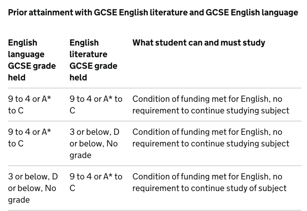 Of course, schools and sixth-form colleges will have their own requirements. Some might have a condition that everyone who fails their English language GCSE has to retake – even if they’ve passed literature! It’s not government mandated, though. So, you’ll be able to find a school that will take you –unless you’re trying to do A-level English!